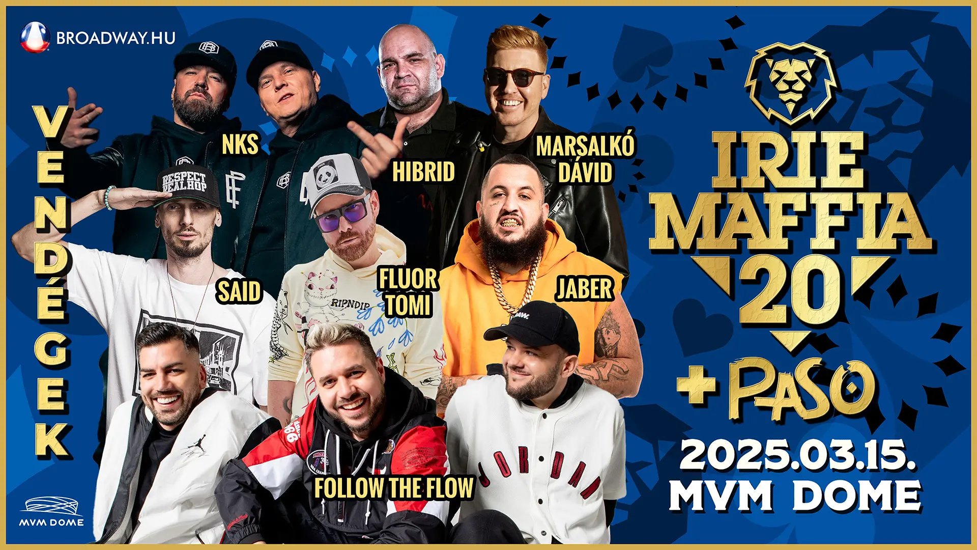 Az Irie Maffia 2025-ben ünnepli 20 éves fennállását, melyet egy hatalmas koncerttel tesznek emlékezetessé 2025. március 15-én, az MVM Dome-ban! Az esemény azért is lesz még különleges, mert a zenekar, éppen 20 évvel azelőtt, 2005. március 15-én adta első koncertjét! Az este egy igazi nagy ünnep lesz!